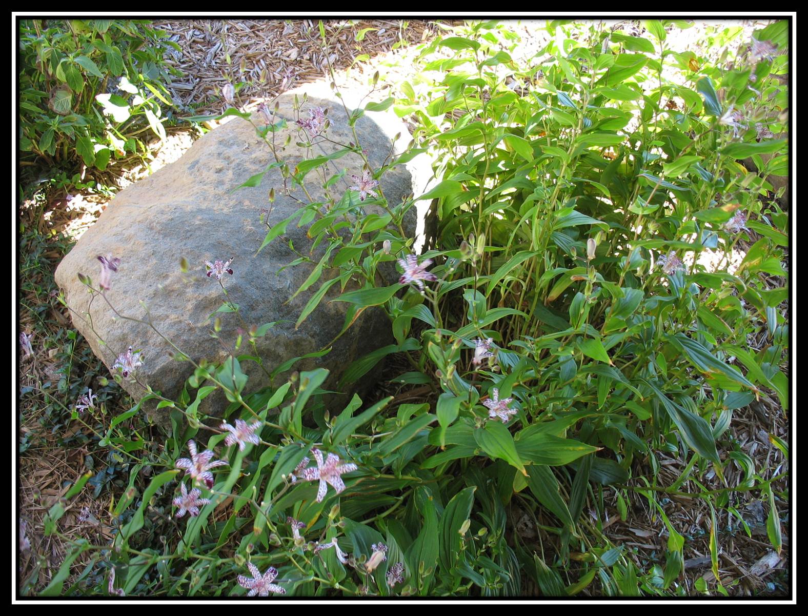 About a month later, I couldn’t help but notice how vibrant and robust the toad lily plant appeared. Despite no special care on our part, it seemed significantly taller and bushier, the stalks markedly greener and thicker.