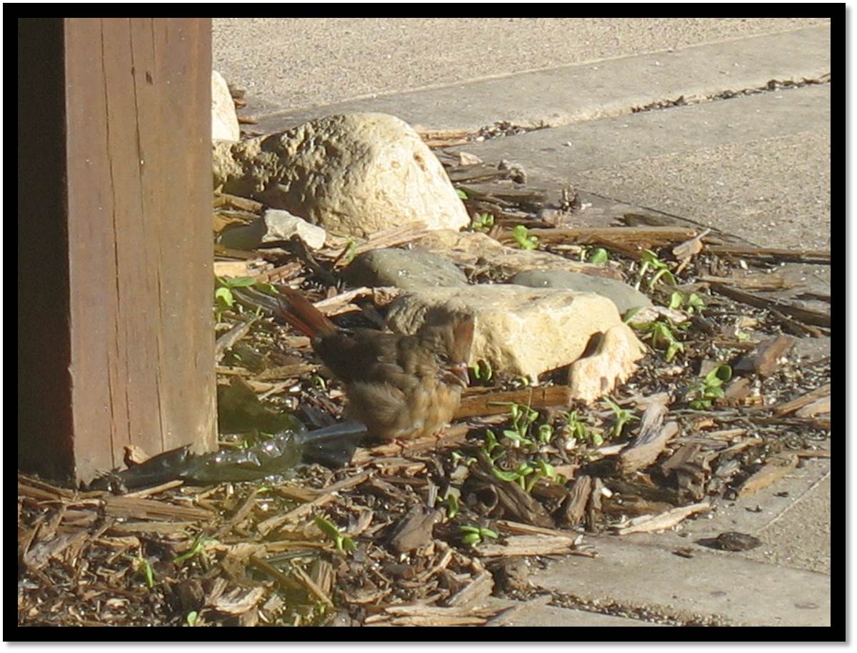 About an hour later, I noticed him hopping around in the grass under the fence. I knew the time had arrived for him to continue to explore his new world. In a matter of seconds, he swooped through the fence, zipped across the neighbor’s yard, and flew around the corner until I couldn’t see him any longer.