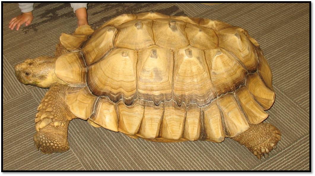 Jim quickly gained the attention of everyone in the room and built our anticipation for the show. The kids immediately became so excited they could barely stay in their seats. After general introductions about Jim and his Cold Blooded Creatures club (90% of club members are rescues), Jim brought out the first guest, a big beautiful African Spurred tortoise named Tank. Tank, which was bred in captivity, crawled around the carpet while the kids crawled around him. A few lucky little ones even got to go for a tortoise ride. A few of us big kids couldn’t help but reach out to touch his shell and legs, too. Tank didn’t mind any of the attention one bit.