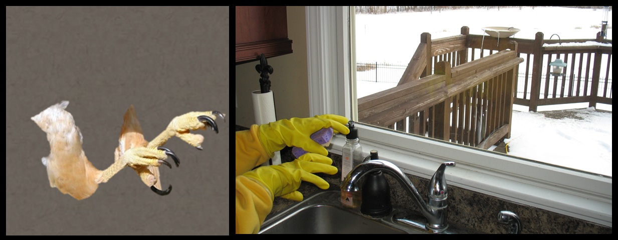 I am so sorry little friends! It never occurred to me that it must be confusing that the same nice lady who provides you with a bounty of seed and fresh water also employs a beast of a bird with claws of death that hover about the window from time to time, just waiting to wash a dish and make a kill.