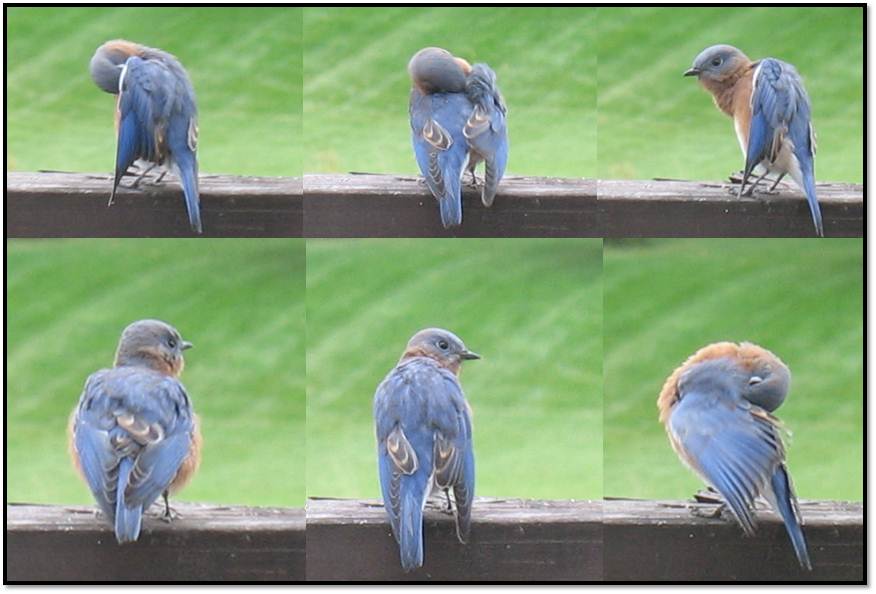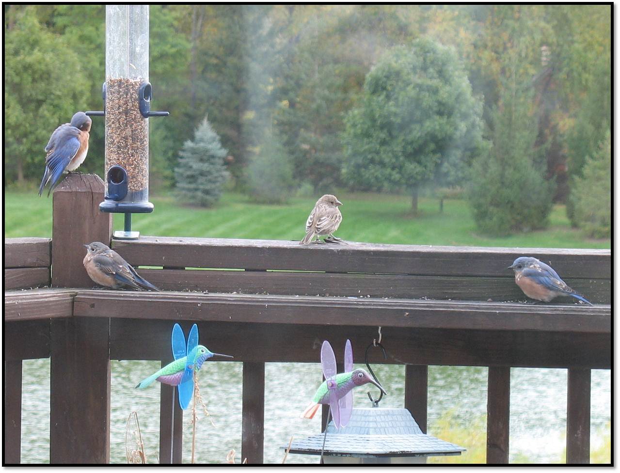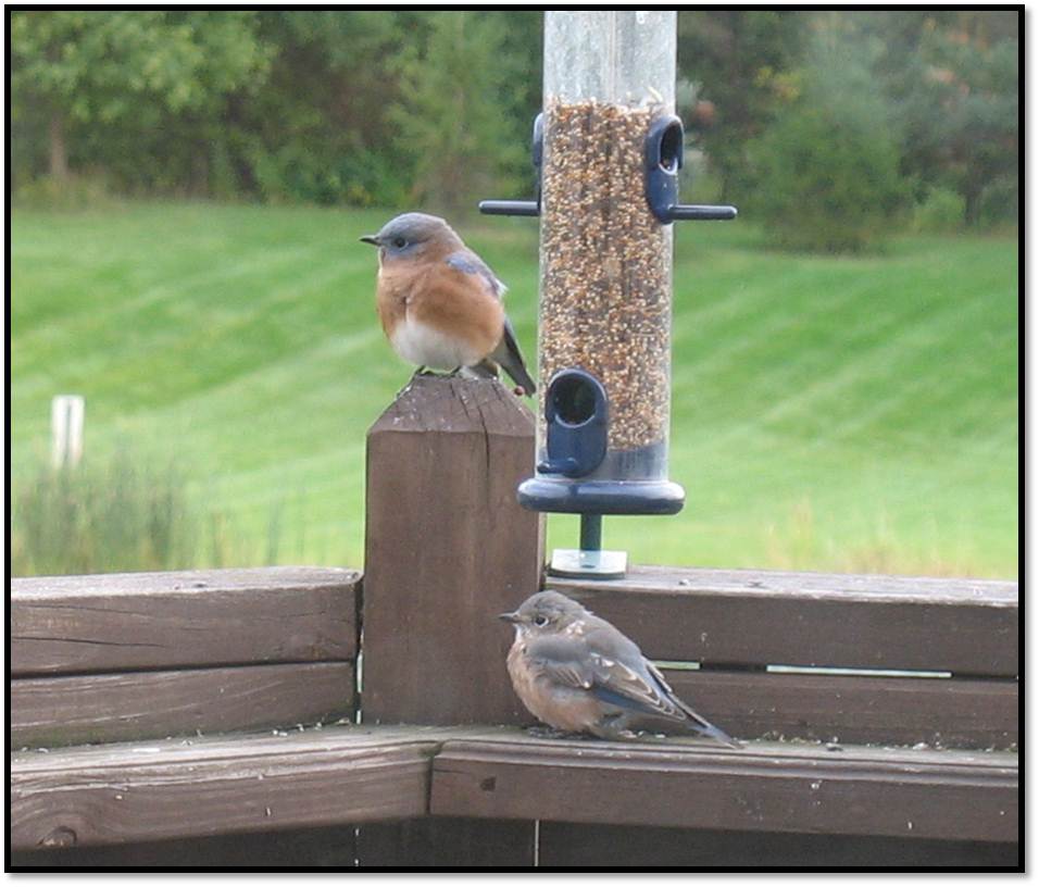 We get Eastern Bluebirds from time to time zipping across the yard but it’s not common at all to witness them just hanging out on the deck.