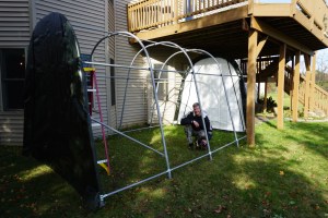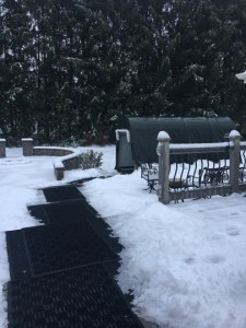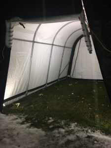 We’re delighted that the tent has provided an excellent barrier from snow and wind; it’s exactly what we hoped for and then some. The benefits we have all enjoyed have far exceeded the cost of materials and our efforts to build it. We don’t intend for this tent to be up year round, only for winter. It would be great if we could reuse these same materials, but if not, we will absolutely consider investing in sturdier components for future use.