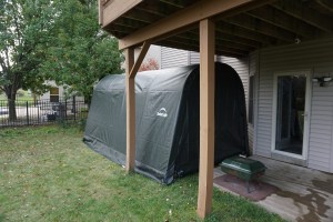 Prior to the 6 x 6 shed, we tried a larger shed. It worked fine at our last house, and was more than we needed, but was too big at our current house, so we downsized. We did, however, discover that having lights and a remote to turn them on and off from inside was incredibly handy!