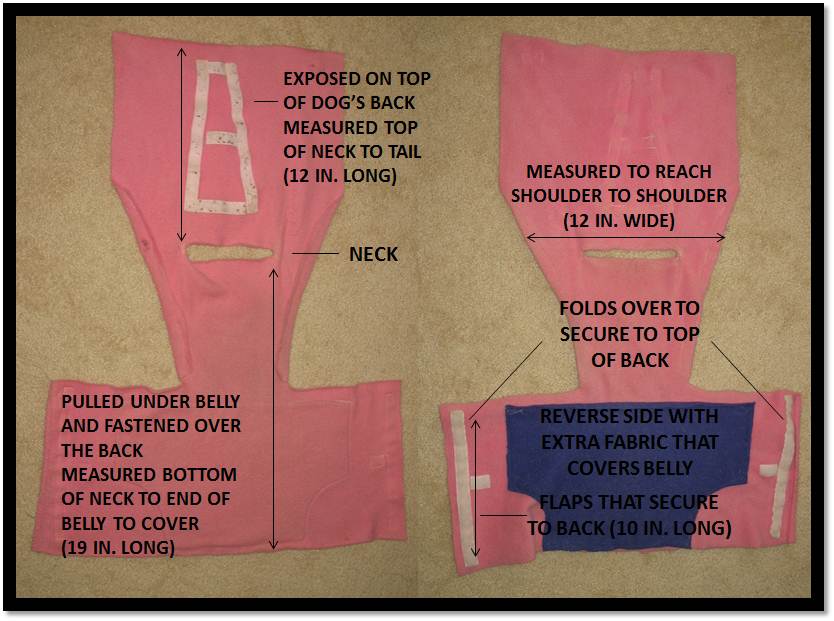 Use caution and common sense if you do any measuring, cutting, and pinning while the coat is on the dog!