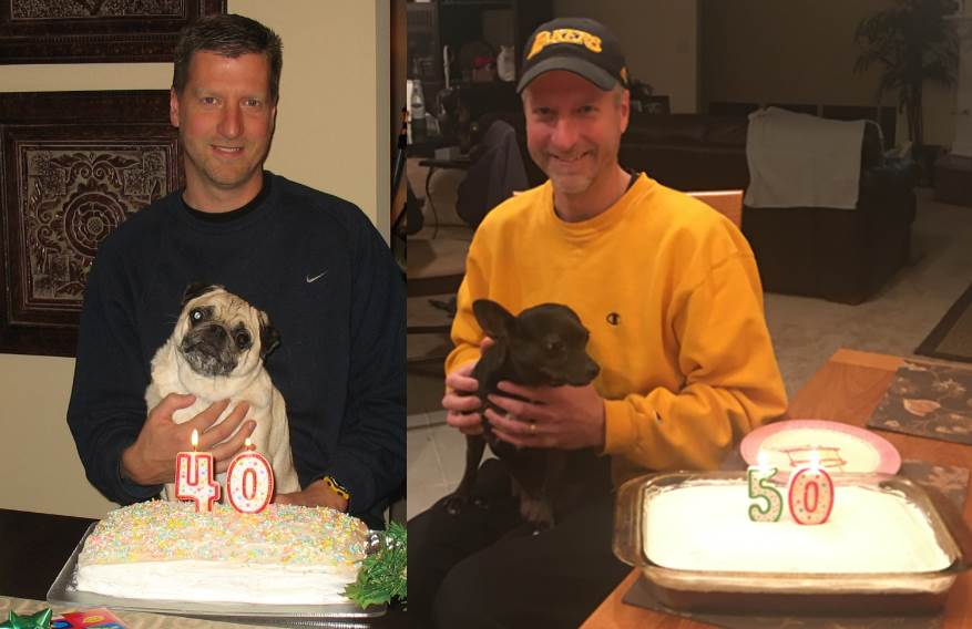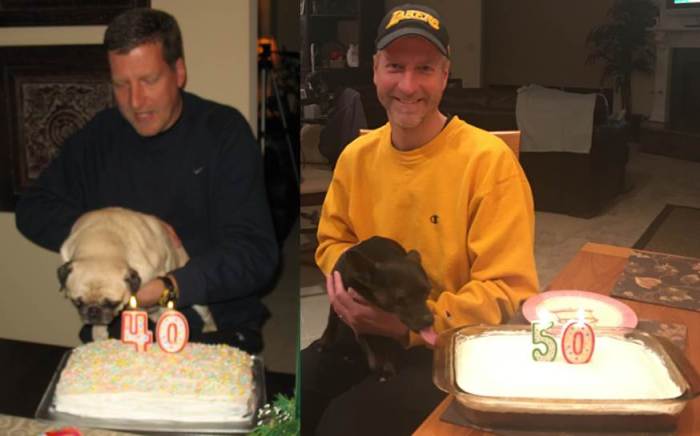 A decade apart, a different house, and a different canine companion to help celebrate.