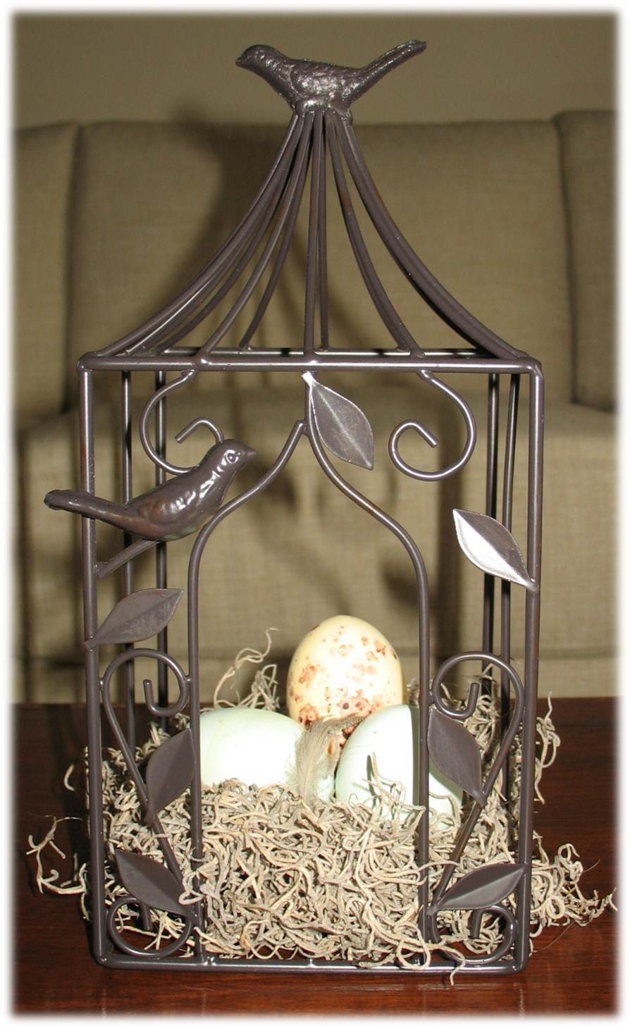 This is a candle holder I found on clearance at a chain arts and crafts store. I added fake moss and fake eggs.