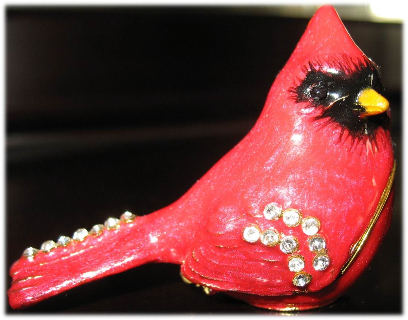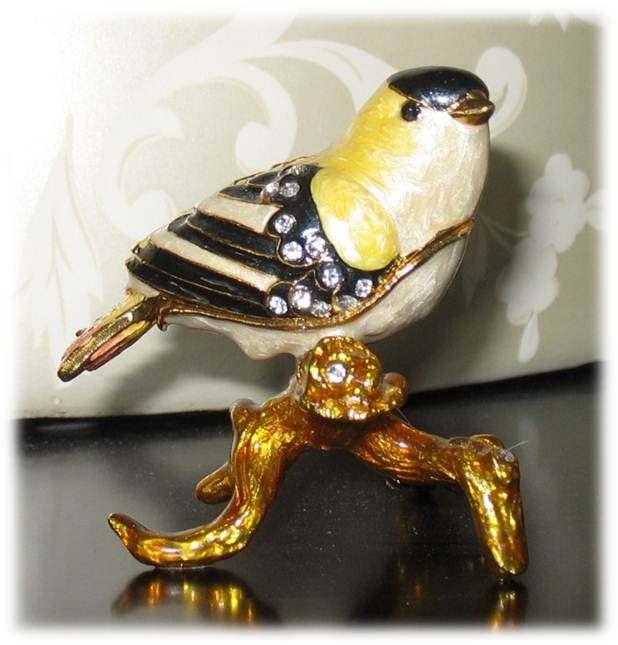 I adore bird trinket boxes. Shiny. Pretty. This satisfies the little girl in me who delighted in collecting little animal figurines.