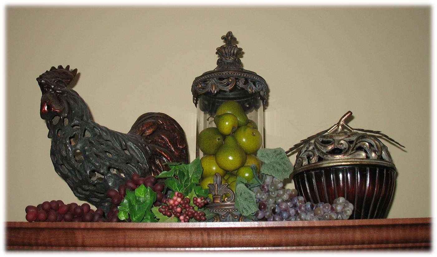 My long and arduous hunt to find that perfect ceramic fowl paid off. After interviewing countless game birds, I finally found the right hen for the job of bringing the right size, color, shape, and interest to the kitchen island. Color me Home Goods happy once again!